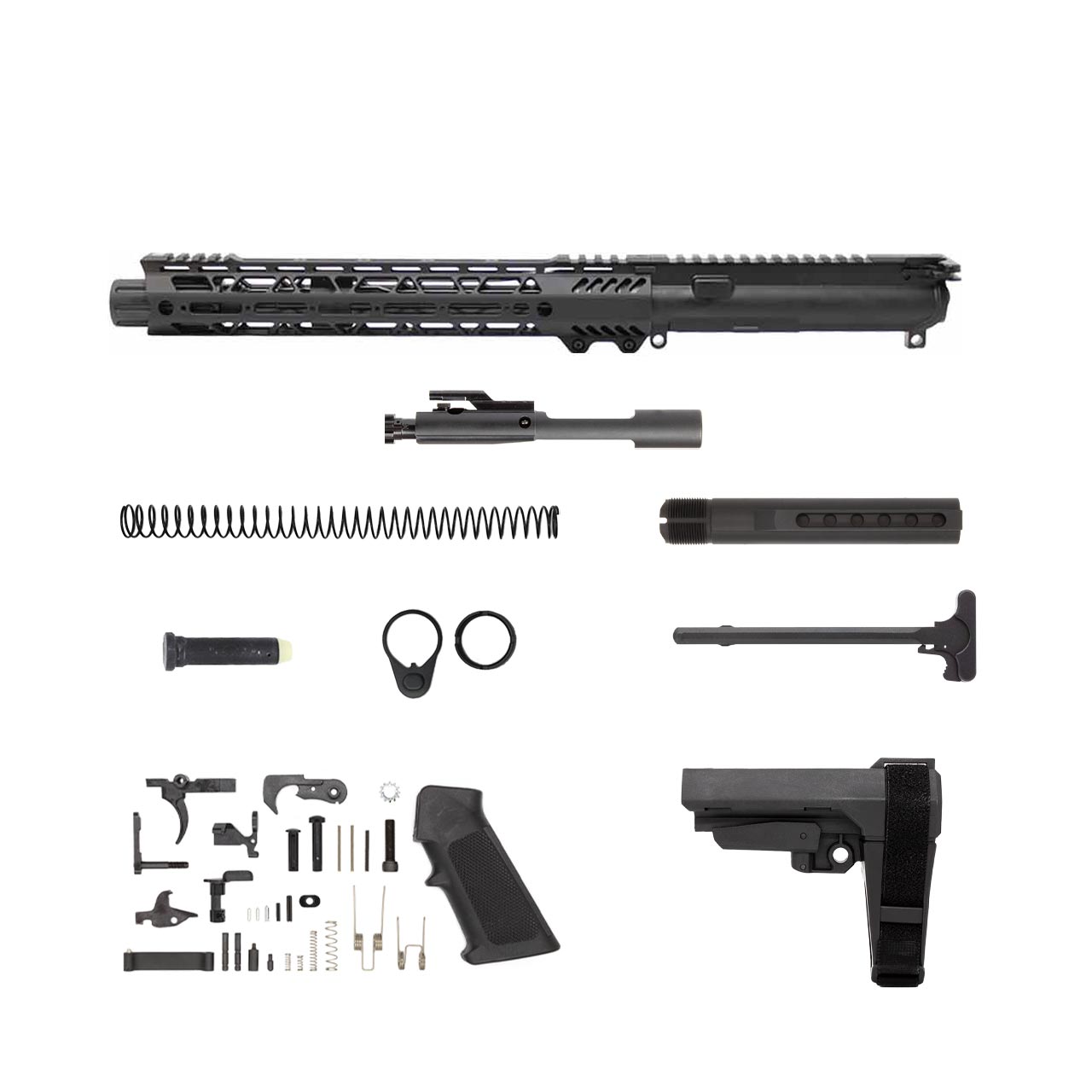 You’ll also receive a 5-position buffer tube with an ergonomic SB Tactical pistol brace to improve shot group placement and reduce felt recoil. All components in the kit feature mil-spec fittings and finishes for a perfect match.
