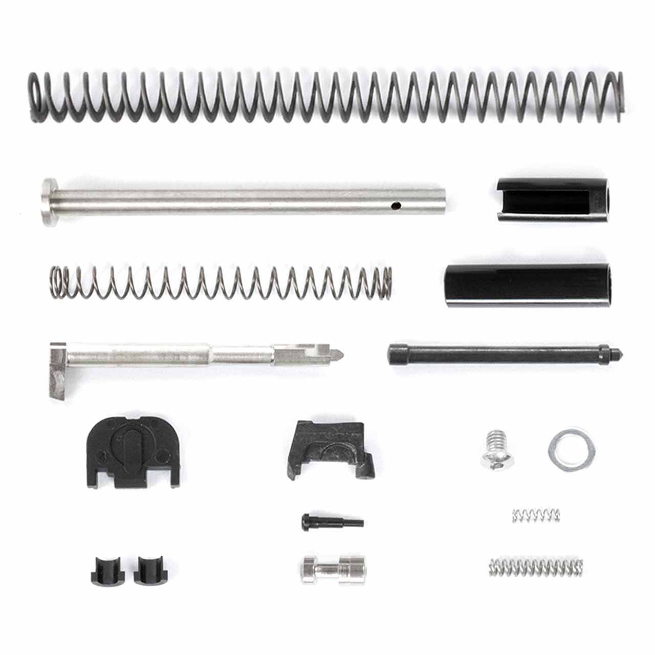 This kit includes the accessories and components you need to complete a frame and hit the range. This kit is compatible with Gen3 Glock® 17 components for further customization. These are the accessories included:
